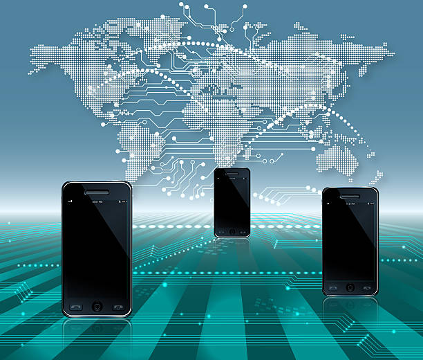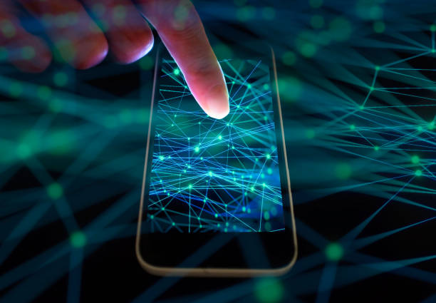 Woman's hand using smart phone with technological backgrounds